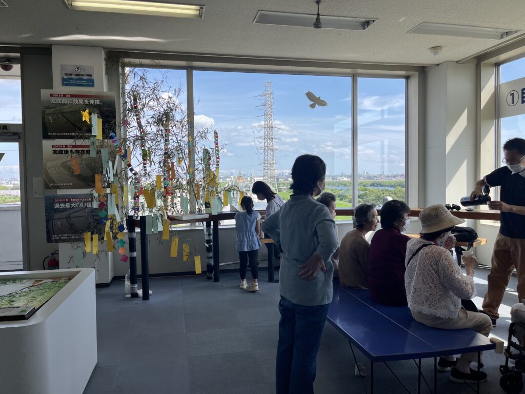 ・ファミリーでも河川敷北側はちょうどいい距離感。(もう少し早ければ芝生側で腰かけられるかも?)